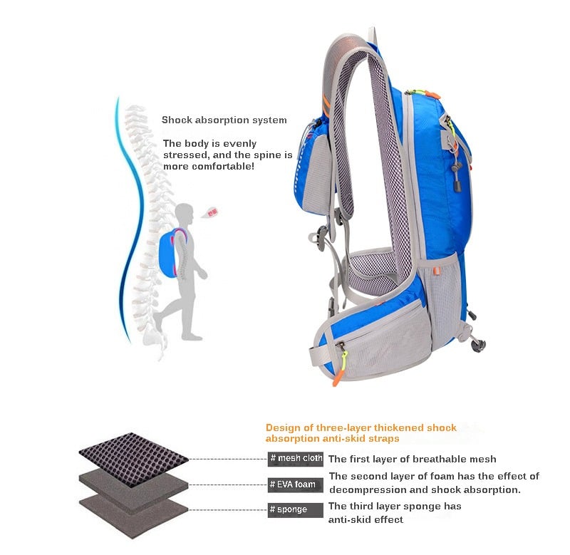 Se puede utilizar como mochila de hidratación, adecuado para una bolsa de agua de 2 litros, orificio especial diseñado para la bolsa de agua.