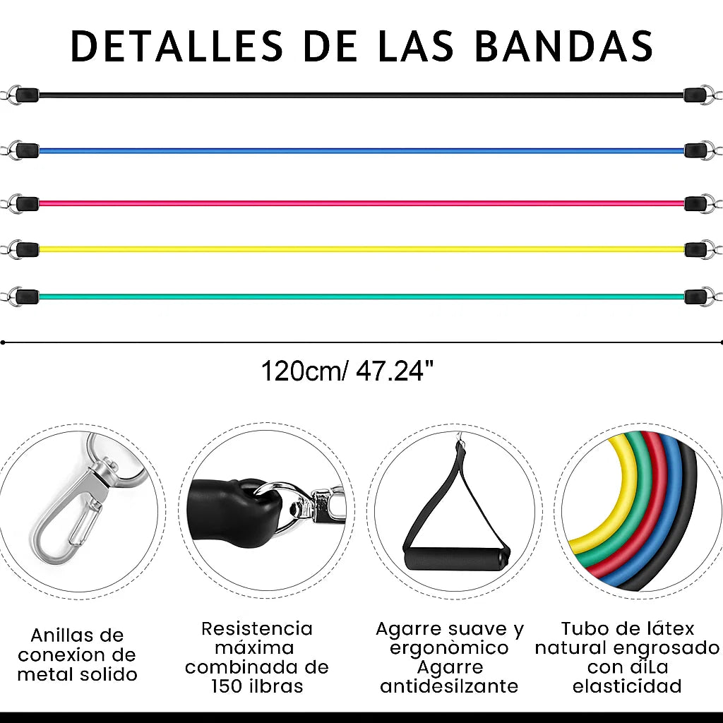 ✅ 5 Bandas de resistencia de diferentes niveles: Amarilla: 10 lb - Roja: 15 lb - Verde: 20 lb - Azul: 25 lb - Negra: 30 lb