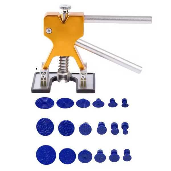 Esta herramienta utiliza un sistema de tracción precisa que, con la ayuda de ventosas o adaptadores especiales, jala suavemente la chapa hacia afuera, restaurando la superficie a su estado original.