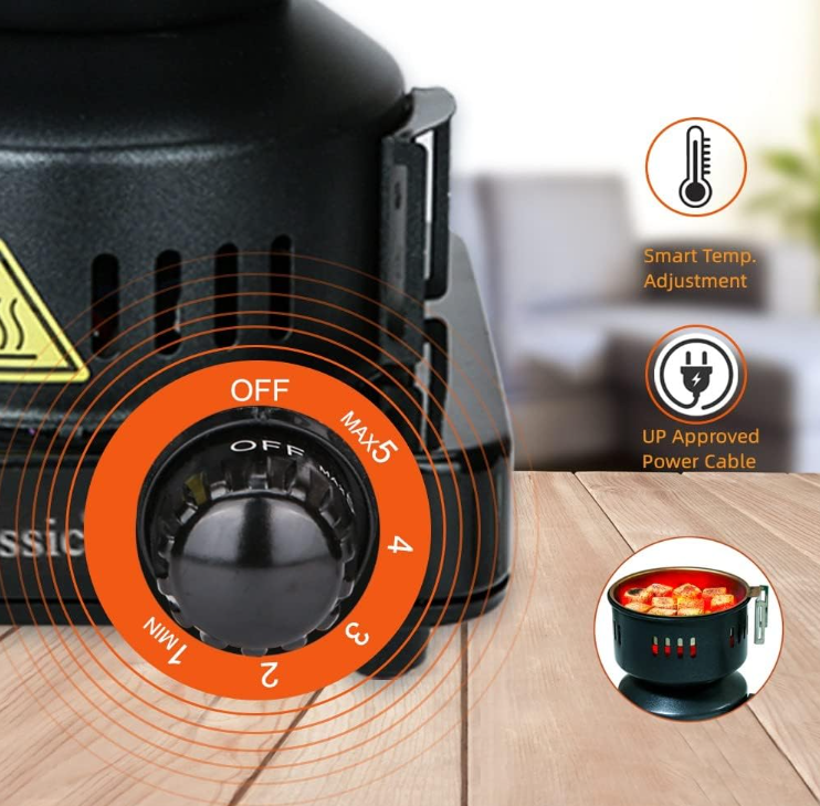 Calienta y pone el carbón al rojo vivo en 7–10 minutos gracias a su resistencia profesional de acero inoxidable 304.
