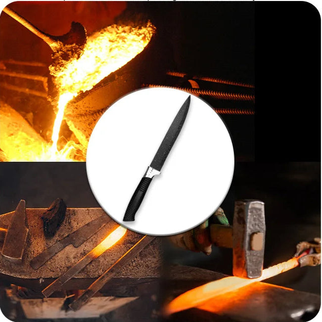 Cocinar ya no será lo mismo. Con este set de cuchillos tendrás la herramienta adecuada para cada preparación: carnes, pescados, pan, frutas o verduras. Cada pieza ha sido diseñada para combinar tecnología de calidad con un diseño elegante que transforma tu cocina.